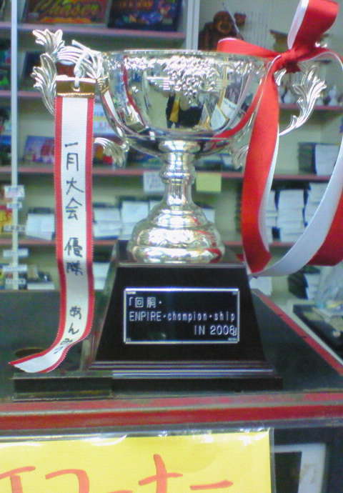 おめでとうございます. そして,第1回優勝者のあんみつさん,おめでとうございます! 行きたかったなぁ....出場したかったなぁ... 3月は日程が合えば是非参加したいと思いますのでよろしくお願いします. しかし,優勝しちゃったら,新幹線でトロフィー持って帰るの,なんか恥ずかしいなぁ(すっかり優勝する気 笑) やっぱりエンパイヤさんに置いておいてもらおう(笑) ところで,終わったあとは宴会やったんですか? それも楽しみなんですけど(笑) 【2008/01/2723:30】||やまんじ#99bd570b06[ EDIT ]