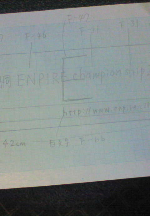 「エンパイヤオリジナルタオル」を作ることになりましたッ! 「ダービー」に参加して下さった方全員に配る予定です。 ・・・・そのダービーなのですが、ここでもさんざん書いている「娘っこ杯」、 今回は今のところ参加者4人・・・・ や、やっぱりアタシが台を選んだスットコ大会だから・・・・ッ(涙) 上位3名様には「手作りお菓子」なんてイバッてましたが、 これではほぼ全員に配ることになりそうです・・・・ (そして入院コースへ) ええええ~~~いッ 4名さまではまだまだダメだよッ!! プロデューサーM(メカニック)に怒られてしまうッ! まだまだ参加者募集中! みなさん奮ってどうぞ! 参加上等! 入院上等!! PR |