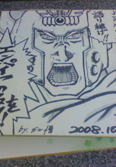 >ガイドスタッフの方はいい人ばかりですよね。 本当にそう思います。みなさまこんな下っ端の私にまで気さくに声をかけてくださるので・・・・白夜に足向けて寝られません。 >ガル憎さん漫画家みたい。 本当にすごいクオリティーでした!1人で黙々と何か描いてるので何だろう、と思ってたのですが。これぞ真の「画伯」ですな。 >ちゃかぴょんさん 本日はお子様連れでわざわざご来店ありがとうございました!きっと電車乗り継いで大変だったと思います。 回胴魂Tシャツは最後までいらした方たちだけの特別プレゼントだったみたいでした。 >おやじスロッターさん 壮絶なねらーぶりを発揮していただいて何よりです(笑) 素晴らしいAAで。 >仕事ほっぽってエンパイヤ行って良かった… ホントにお二人に会えてよかったですね!泣いてらしたもんね! >ゆぅmamaさん >今日は素敵な、最高な時間をありがとう(≧∀≦)♪ 本当にお二人に会えて良かったね!写真もサインももらえたしね!緊張度がすごかったのも分かりましたよ!最後にパパもお二人に会えたし、良かった良かった♪ もう有名人はこないけど、ママたちみたいな「地元組」に愛されてるおかげで当店はやってけてるから、また遊びにいらして下さいね! >トルグラさん >「パシリ」の娘っこさんはアタヾ(・・;)ノヾ(;・・)ノフタしませんでしたか? アタフタしっぱなしでした。まずガル憎さん本人を「お客さん」だと思いフツーに対応してしまったことを、死ぬほど反省しています。(顔は知っていたはずなのに、テンパっちゃって・・・・) >今月のエンパイヤイベントはマッタリのんびりと楽しみますね! 無理なさらない程度に、お待ちしております! >コキ男さん >凄い数のお客さんでしたね。 お2人のファンの方が外で「出待ち」みたいなのしてて、改めてその有名度にビックリした私です。逆に混んでしまって、コキ男さんにもご迷惑をおかけしました。 >突然『その場走り』をしてるとこを目撃。 あっ・・・・見てたのね・・・・急に人がいなくなって、あんまり寒かったからつい1人で店内を走ってたの・・・・ >にゃんこ太郎さん >ガル画伯に娘っこさまを描いてもらったらよかったのに・・・。 そんなズーズーしいこと頼めませんよお〜〜「店用」に描いてたのも、すごい時間かけて、丁寧に線とかまっすぐ引いてて、トーン貼ってるみたいな、とにかくスゴいクオリティーなの!マンガ家になれますな、あの方は。 >銀河のブルーさん >行けばよかった・・・今日休みにしないで・・・行けばよかった(汗 くればよかったのに〜〜ッ!すごい熱気で迷惑かけたかもしれませんが、とっても優しいお二人でしたよ! >ライスさん 平日でもすごいお客様が集まってくださったので、ありがたい限りです。みなさま「仕事休んだ」とか「仕事放り投げてあわてて来た」とか言ってました。やはりそれだけの価値があるお二人ですものね・・・・ 【2008/10/0902:23】||娘っこ#56b87bf27e[ EDIT ]