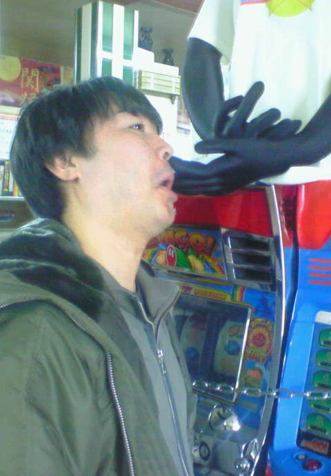 「パチ 中武一日二膳さんですッ! 「鉄っちゃん」で有名なこの方、 今回も「鉄っちゃん」でいらしたらしいです。 なんか今回はプライベートではなく、 取材だそうで、なんとなんと当店が 「パチスロ必勝ガイドNEO」に 掲載されるらしいのですッ! あ~ああ~~どうしようどうしよう~~ こんな「眼帯」してたら 全国の読者に笑われちゃうよぉぉぉ~~ (アンタ、載らないから) こんな変な顔ばっかりしてる中武さん、 さぞ仕事になったらマジメにやるんだろうと思っていたら、 仕事中も変な顔でした。 「ダイナマイト」を打つこの変な顔・・・・ 「ババメ」はお尻で出せるそうです。 な、なるほど・・・・ さすがプロ・・・・(プロか???) 午後3時くらいまでしか当店にいられないそうなので、 コレを見た人! 今すぐ当店に来るべし! 取材のジャマ になるのでワタシの実況レポートはこれくらいで・・・・ いつの「NEO」に掲載されるのかは、あとで聞いときます。 あ、中武さん「ファイヤーバード」のデータ取ってる・・・ やっぱり仕事しに来たんだ・・・・ PR |