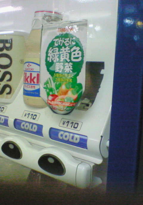 新しい種類の「野菜ジュース」が入ったのですが、業者さんのハナシによると、たまたま模型の見本がなくて、自販機の中に飾っておけないそうなのです。 1週間くらいすれば直るのですが、それまで「野菜ジュース」の見本部分は「カラ」。 ・・・それではあまりにみっともない、ということで、ワタシと店主が協力して「手作り」の「野菜ジュース見本」を作りましたッ! 見てくださいッ! このビンボーくさいことこの上ないことといったらッ! ・・・でも、ないよりはマシ。コレで「野菜ジュース」もじゃんじゃん売れることでしょうッ!(←そうなのか?) さあ飲めッ! コレで野菜ジュース飲め~~~ッ PR |