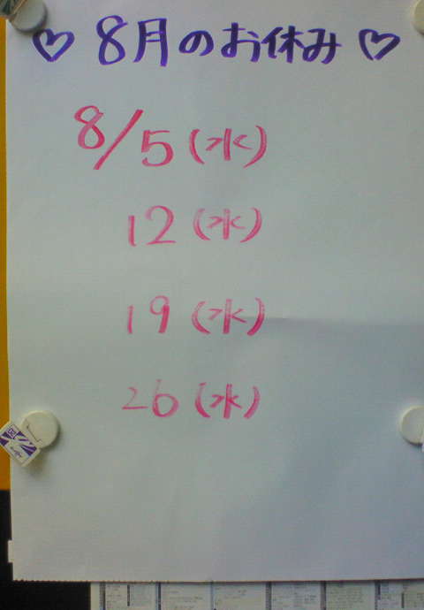 >・・・・・・・・・。 ・・・・・・・・・ニコッ^^ >やまんじさん >東北方面にバイクでツーリングを計画中です. わあかっこいい~~もし当店に寄れることがあったら、ぜひ遊びにいらして下さいね☆ >ライスさん >ジャイアントカプリコ ばかり食べていたら 昨日も6個食べた・・・・でもおいしくてやめられないです・・・・ついでに沖縄の「ちんすこう」まで買ってきてガツガツ食べてしまいました。 >所沢のマ・クベさん >なんなら、気合いの入ったガンダム・イラスト送るヨン。 丁重にお断りいたします・・・・ >キュイン×2さん >太り具合を見に行くのが楽しみですな! い~~~や~~~やめて~~~だいジョブです!そのうち夏バテして痩せますから!! たぶん・・・・ >おやじスロッターさん >ズルっこはいけないと思いますw ・・・ええ、さすがに女将に怒られてしまい、画伯、筆をとりました!すばらしい作品に仕上がったのでぜひ観てください! >裏参さん >次回は初の実写ネタ希望! 「こころ」くらいしか実写載せるの浮かばないです~裏参さんの顔写真でも貼りますか。 >ミノリさん >白紙はやっぱりまずいので 女将にもやっぱりちょっと叱られちゃいました(涙)。とゆーワケですばらしい作品が出来上がったので、ぜひ観てください!こんなすばらしいのが描けるなら、最初から描いときゃよかったよ・・・(反省) 【2009/08/0717:02】||娘っこ#990a804f7f[ EDIT ]