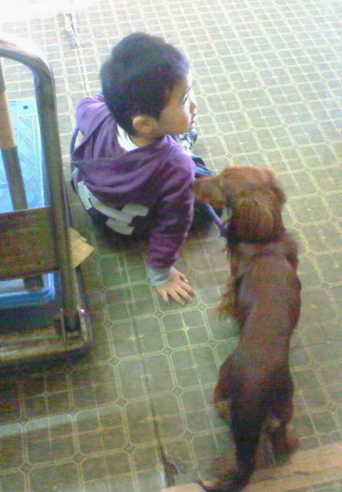 「こころ」ちゃん(オス・1歳) 人間が怖い犬なので、いつもお客様に吠えてばかりいて、 本当に失礼いたしております。 びっくりされた方、本当に申し訳ございません。 ちゃんとしつけてはいるのですが・・・・ そんなこころちゃんですが、 やっと、このコにはなついてくれましたッ! 常連のお客様のちびっ子(2歳・男の子)ですッ! 一緒に外に散歩に1時間くらい 連れて行ってくれたのです。 そこまでされて、やっとこころも、 このコにだけはなついてくれましたッ! は~よかった良かった。 しかも、このちびっ子ったら、 とワタシに小さなお花まで摘んできてくれたのですッ! (感動) おおうぅう~~ こんなおばちゃんにありがとうよ・・・・ おおきく なったら おねえちゃんを およめさんに してね~ (あ、迷惑???) PR |