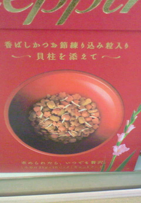 そう、ネコちゃんの恐ろしく豪華なエサにびっくり&ココロにも食べさせた~いと絶叫していた、例によってどーでもいい記事です。 http://enpire.blog.shinobi.jp/Entry/437/ あの時は「~しらすを添えて~」にビックリしたわけなんですが、なんとッ! そのシリーズに新商品が出ました!! 「ZEPPIN 香ばしかつお節練りこみ粒入り~貝柱を添えて~」 も~う、ココロに食べさせたいとか言ってる場合じゃないよ! アタシが食べたいよ! くっそ~~~ネコめ~~~ ネコになりたい~~~~ もし次のシリーズが出たら、今度は「~大間のマグロを添えて~」とか地域モノでいくと思うのッ! はひ~ アタシも「出前一丁の大盛り~卵を添えて~」 とかやってる場合じゃないよ・・・・ |