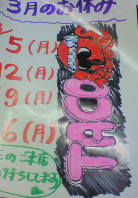 そして横に「絵」を描いて一人で楽しんでたのですが、とうとう、その仕事まで人に頼んだ方がいいということに気づいてしまいました・・・ ヒマそうにしている仲良しの常連のお客様がいらしたので、「よかったら描いてみます?」と声をか こんなに上手に描かれてしまいましたッ! 「ウィンちゃんの赤ちゃん」ですッ! きゃああああ~~~ 上手いわぁぁぁ~~ ワタシの先月の「ジェンヌちゃん」なんかよりよっぽど上手いわぁぁぁぁ~~~ ついでにそのお客様はもう1枚「タコスロ」の絵も描いてくれて、それもとっても上手なんですッ! やはり、スロットを心から愛する人の描く絵は 違うんでしょうか・・・・ワタシがいつまでも「ビック」と「バケ」の違いに悩んだり、「オリンピア」と「ヤマサ」のカギが似ている、と一人で悩んでいるからダメなんでしょうか・・・ 今まで「今月のお休みポスター」を自信マンマンに描いていたのに・・・ ええいッ! 来月こそッ! 来月の「お休みポスター」は負けないくらい上手に描いてやるッ! 今まで気を使って 「スロットのキャラクター」を描いていたけど、もうそんなの関係なく描いてやる~~~ッ 大好きなマンガの『ろくでなしぶる~す』とか『カメレオン』とか『工業哀歌バレーボーイズ』の絵とか描いてやるぅぅぅぅぅ~~~ PR |