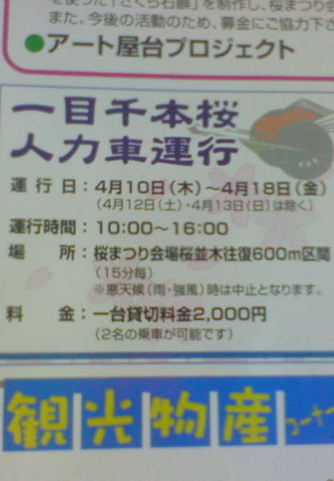 颯爽と走る人力車… 春が来た!って感じですね。 スロも良いけど桜も良さそう〜! 是非是非綺麗な桜の画像をUPしてくだされ〜 エンパイヤTシャツを後ろ前に着て(珍古魂が前になる)